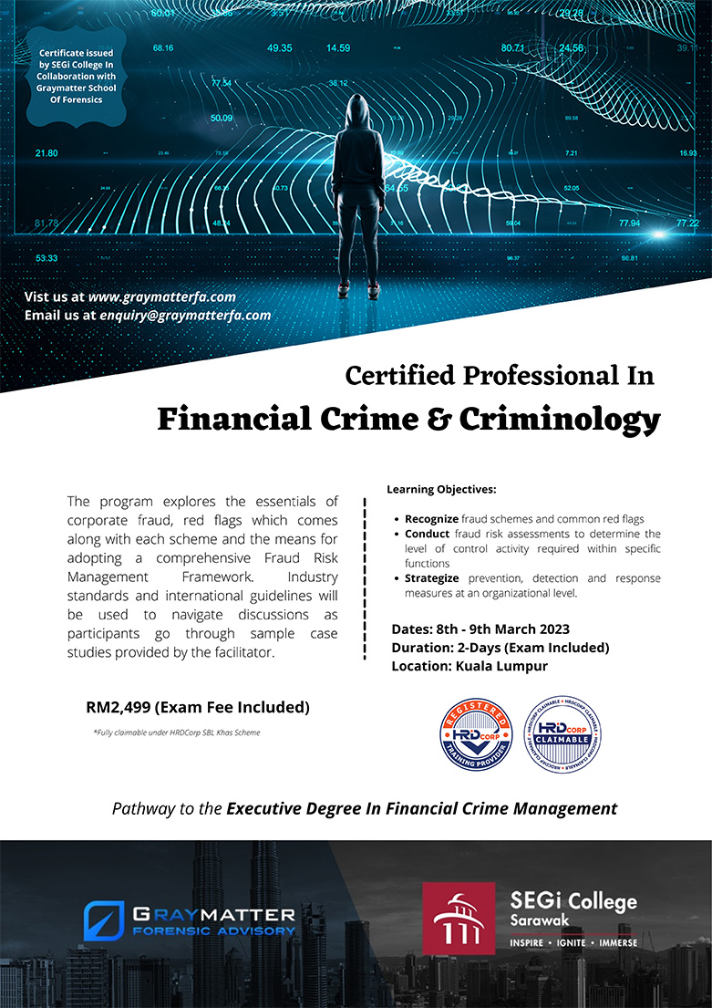 Raymon holds a Master of Science in Economic Crime Management and is professionally certified as a Certified Fraud Examiner, Certified Anti-Money Laundering Specialist, and ISO 37001 ABMS Lead Auditor. He is also a Certified HRD Corp Trainer, a PECB-accredited professional and an ACFE authorized trainer.